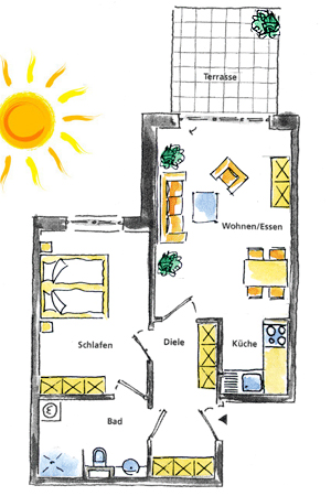 Zwei-Zimmer-Wohnung mit terrasse Wohnung 6
