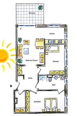 Drei-Zimmer-Wohnung mit terrasse